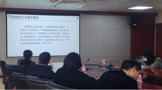 公司党总支书记王德华书记分别从目前就业落实情况、寒假期间暖心就业服务开展情况以及就业工作存在的困难问题进行汇报。